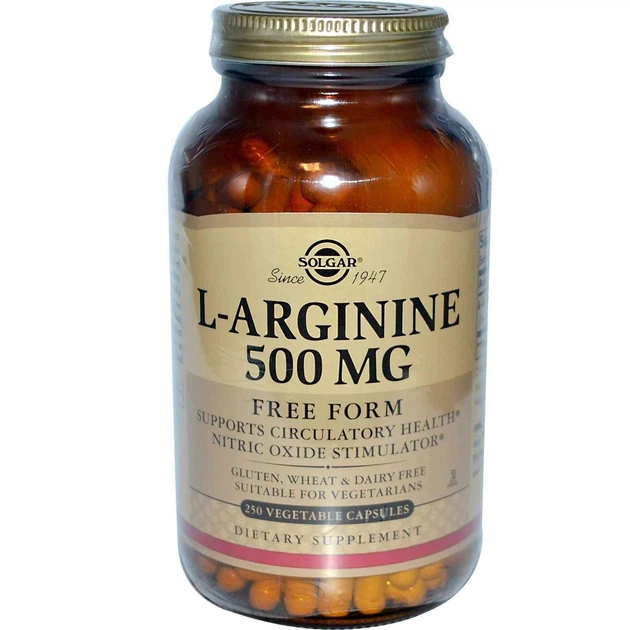 Аргінін Solgar L-Arginine вільна форма 500 мг, 250 вегетаріанських капсул (SOL-00142)