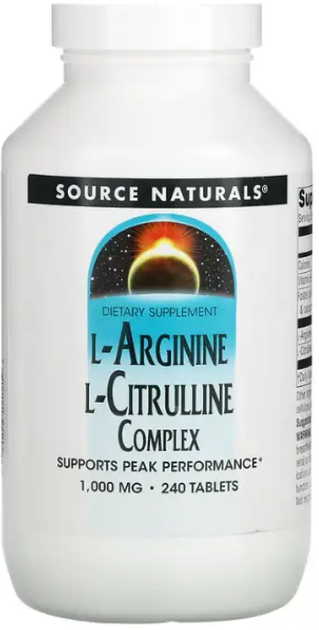 Аргінін цитрулін (амінокислоти) Source Naturals L-Arginine L-Citrulline 240 таб в упаковці (ARE-575747)