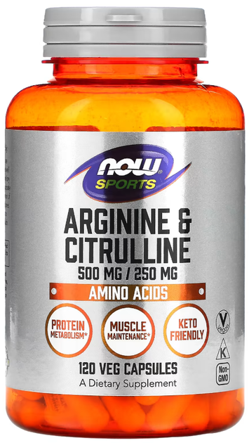 Амінокислоти Аргінін та Цитрулін NOW Foods Arginine and Citrulline 500 мг/250 мг 120 капс