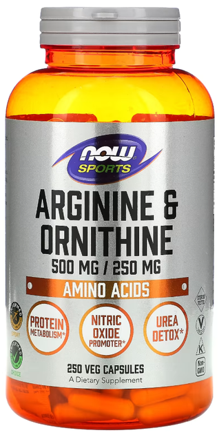 Амінокислоти Аргінін та Орнітін NOW Foods Arginine and Ornithine Sports 250 вег капс