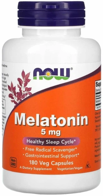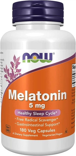 Мелатонін Now Foods Melatonin 5 мг 180 вегетаріанських капсул в упаковці (ARE-574923)
