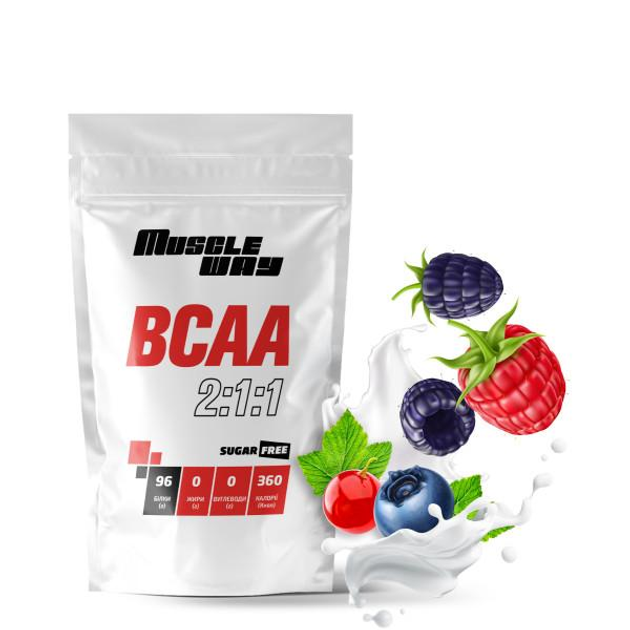 Амінокислотний комплекс MuscleWay BCAA 2:1:1 без цукру на 10 порцій 100 г Лісові ягоди (21-125-bcaa-mw-rs100.ly)