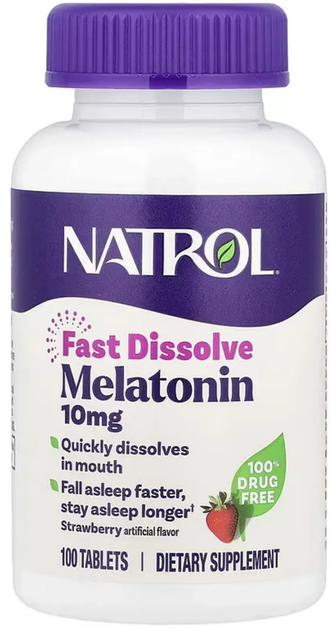 Мелатонін швидкорозчинний 10 мг Natrol Melatonin 100 таблеток зі смаком полуниці