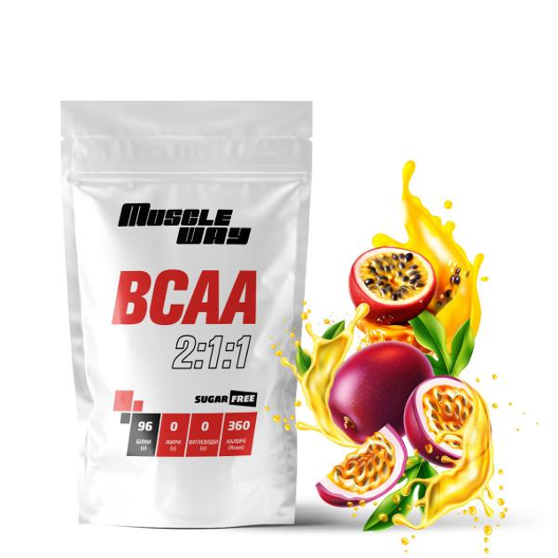 Амінокислотний комплекс MuscleWay BCAA 2:1:1 на 30 порцій без цукру 300 г Маракуйя (14-125-bcaa-mw-rs300-3)