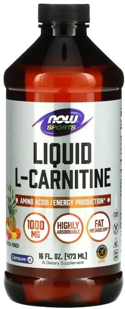 Амінокислота L-карніт Now Foods L-Carnitine Sports 1000 мг 473 мл тропічний пунш в упаковці (ARE-574436)