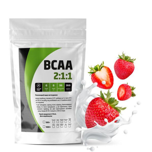 Амінокислотний комплекс BCAA 2:1:1 99 білка на 50 порцій 500 г Полуниця (14-125-bcaa-p500)