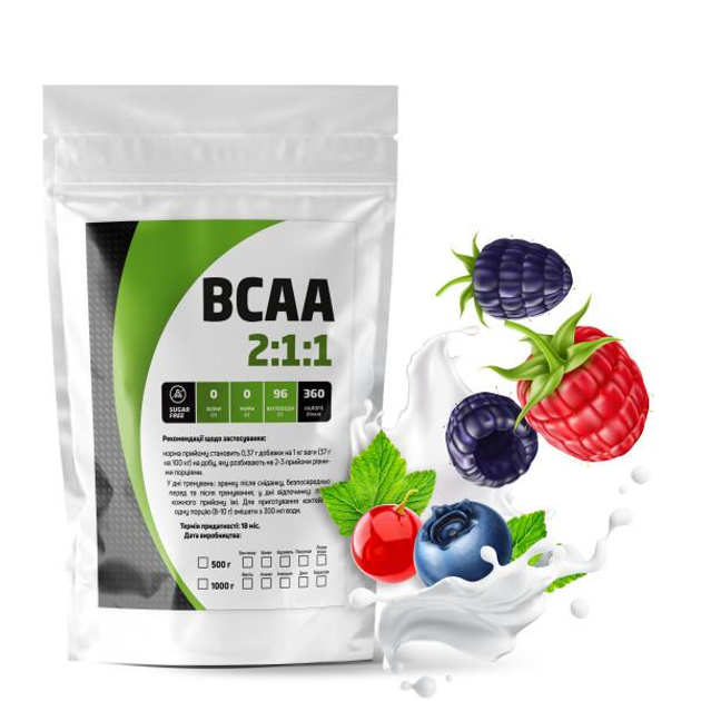 Амінокислотний комплекс BCAA 2:1:1 99 білка на 50 порцій 500 г Лісові ягоди (14-125-bcaa-l500)