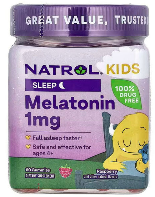 Мелатонін для дітей жувальний Natrol Kids Melatonin Natrol 60 цукерок зі смаком малини