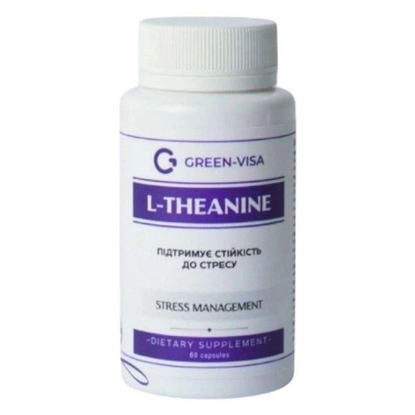 L-Теанін Green Visa (L-Theanine) Підвищує концентрацію, Грін-віза, 60 капсул