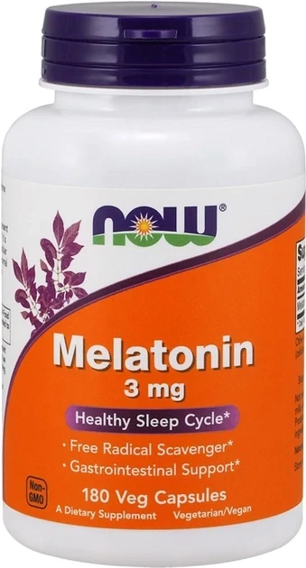 NOW Foods, мелатонін 3 мг, 60 вегетаріанських капсул