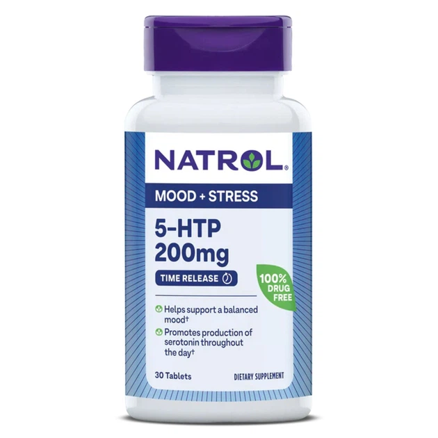 Амінокислоти Natrol 5-HTP (Гідрокситриптофан) повільного вивільнення 200 мг 5-HTP 30 таблеток