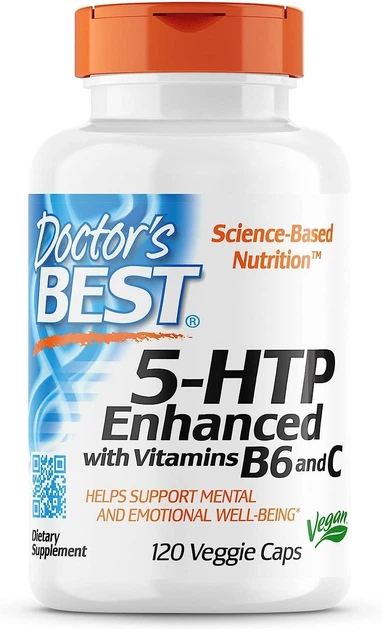 5-HTP, 5-гідрокситриптофан з вітамінами B6 і C, Doctor's Best, Enhanced with Vitamins B6 & C, 120 капсул
