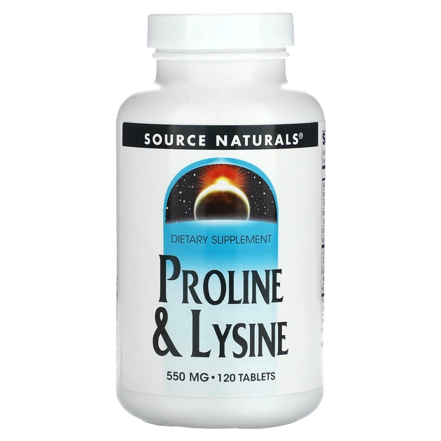 Лізін Пролін, L-Proline L-Lysine, 550 мг, 120 таблеток Source Naturals (2000003172603)