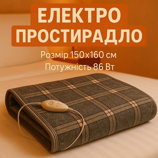 Електропростирадло електрична ковдра в клітинку розміром 150х130 см. на 2 температурні режими