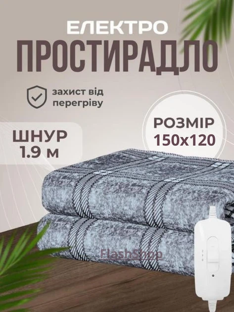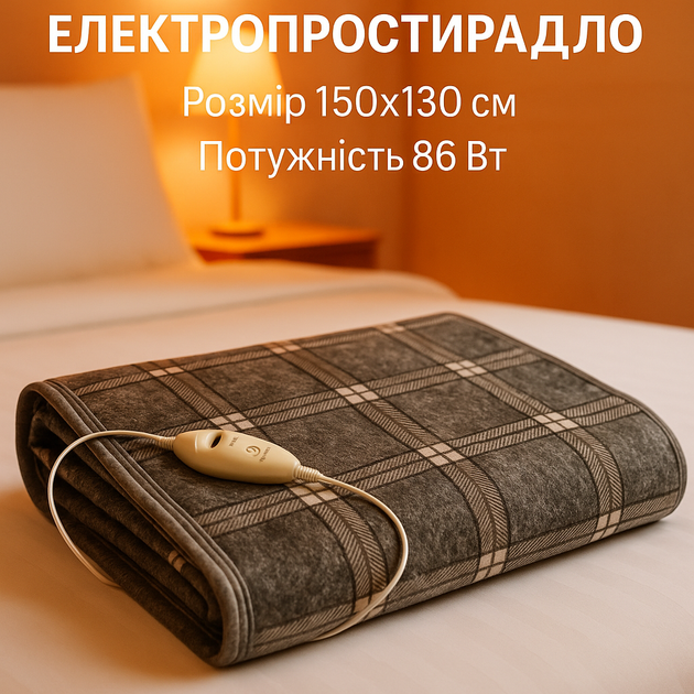 Електропростирадло - електрична ковдра 150120 см, 140 Вт, 2 режими нагріву (сіре в клітинку)