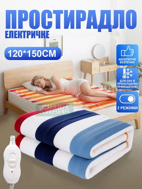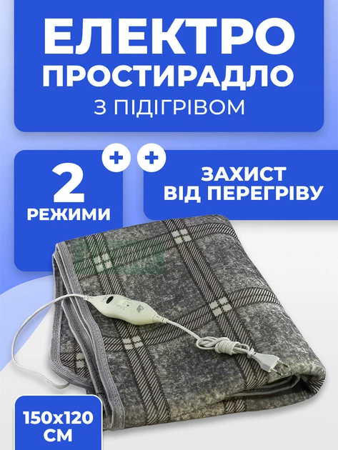 Електропростирадло 220V з підігрівом 150х120см електрична ковдра-покривало в клітку, тепла електроковдра-грілка для ліжка та