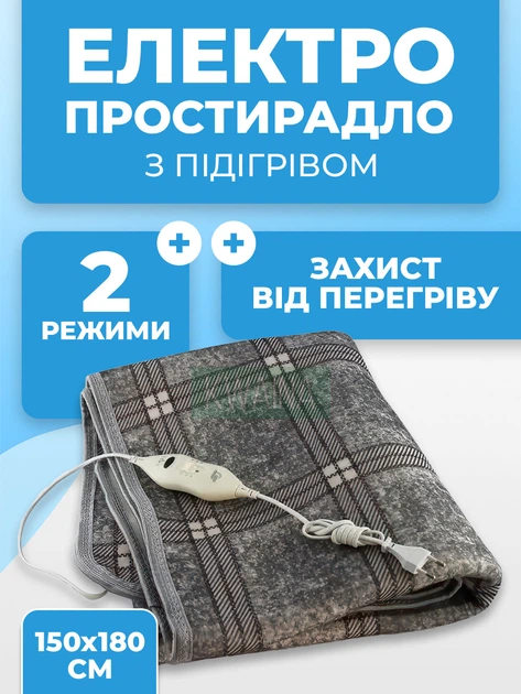 Електропростирадло 220V з підігрівом 150х180см електрична ковдра-покривало в клітку, тепла електроковдра-грілка для ліжка та
