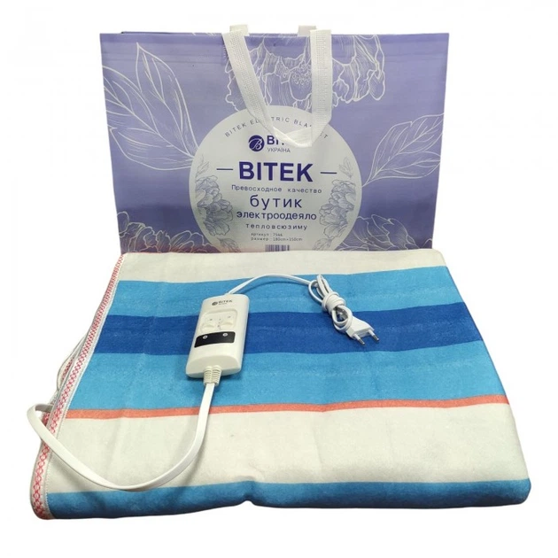 Електроковдра двоспальна байкова BITEK BT-2109 150*180 см, 2 режими Синій