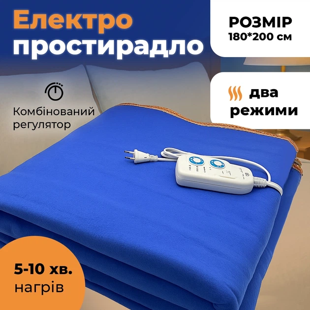 Електропростирадло двоспальне LUX MAX 180*200 см, з комбінованим регулятором, арт.180200, синє