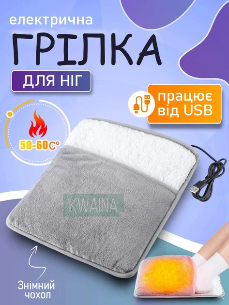 Портативна грілка килимок для ніг з електричним підігрівом USB, Електрогрілка для ніг робота від Power Bank, мережі 5V, Сіра