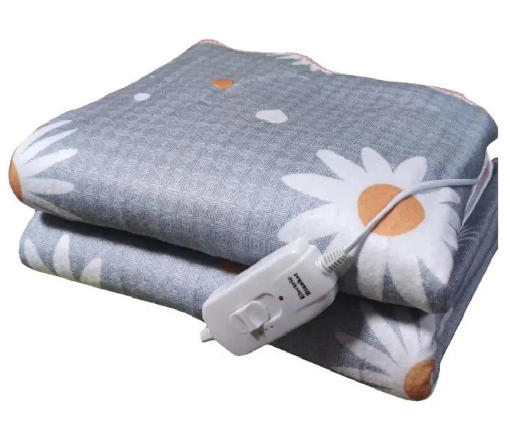 Електропростирадло односпальне, простирадло з підігрівом Royan Туреччина 70х150 см щільна байка, сіре з ромашкою