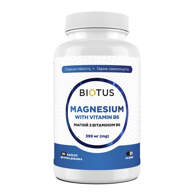 Магній з вітаміном В6, Magnesium with Vitamin B6, Biotus, 399 мг, 150 капсул