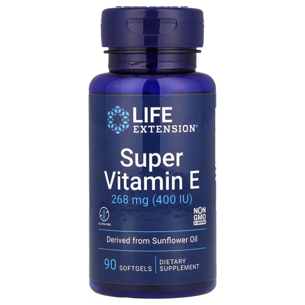 Вітамін Е Life Extension Super Vitamin E 268 mg, 90 капсул для підтримки серця, мозку та імунної системи