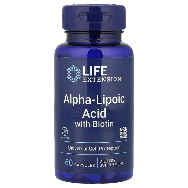 Альфа-ліпоєва кислота з біотином, 250 мг, Alpha-Lipoic Acid with Biotin, Life Extension, 60 капсул