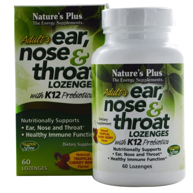 Вухо, горло, ніс Nature's Plus Ear Nose & Throat для дорослих, вишневий смак, 60 таблеток для розсмоктування