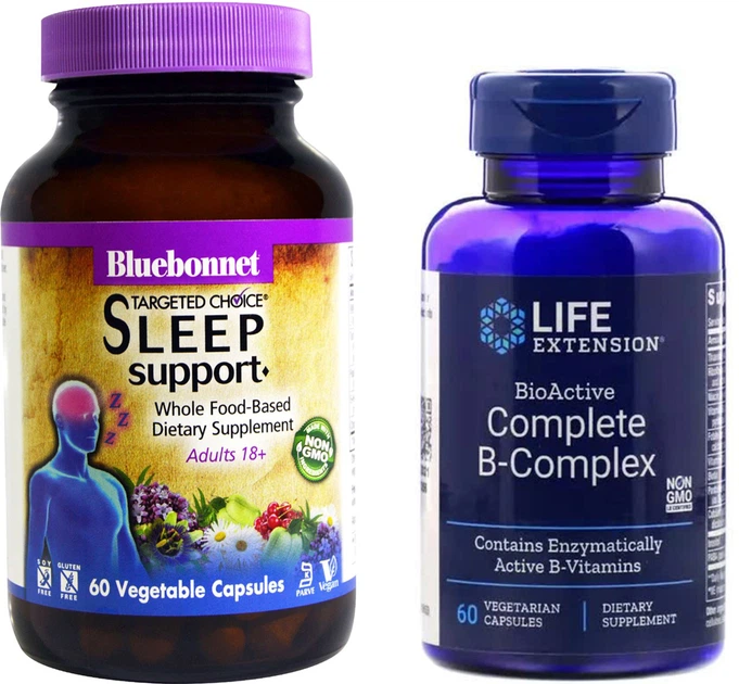 Набір Нормалізація сну Targeted Choice Bluebonnet Nutrition 60 рослинних капсул + Комплекс вітамінів групи В, BioActive Comp