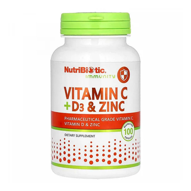 Імунна добавка з вітамінами C і D3 та цинком NutriBiotic Immunity 100 капсул