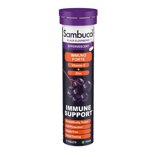 Чорна бузина Вітамін С і Цинк Самбукол Sambucol Immuno Forte для дітей від 4 років 15 шипучих таблеток