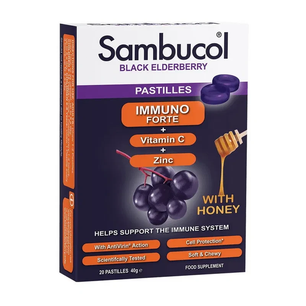 Добавка для імунітету з бузиною та цинком Immuno Forte Pastilles, Sambucol, 20 пастилок