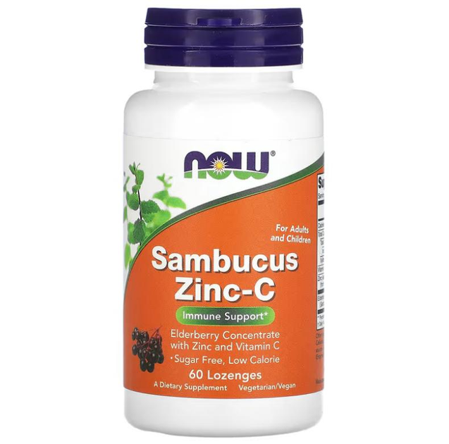 Цинк із вітаміном C, бузина, NOW Foods, 60 пастилок