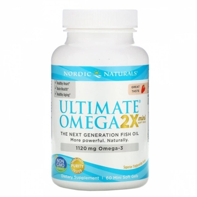 Риб'ячий жир міні (полуниця), Ultimate Omega 2X, Nordic Naturals, 1120 мг, 60 капсул (NOR-06100)