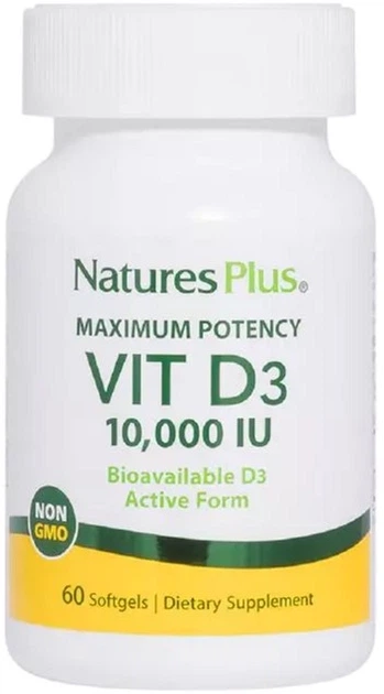 Вітамін D3, 10 000 МО, Nature's Plus, 60 гелевих капсул (097467010482)