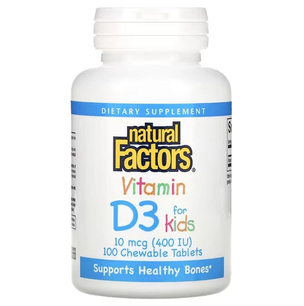 Вітамін Д3 D3 400 МО для дітей зі смаком полуниці Natural Factors 100 жувальних таблеток