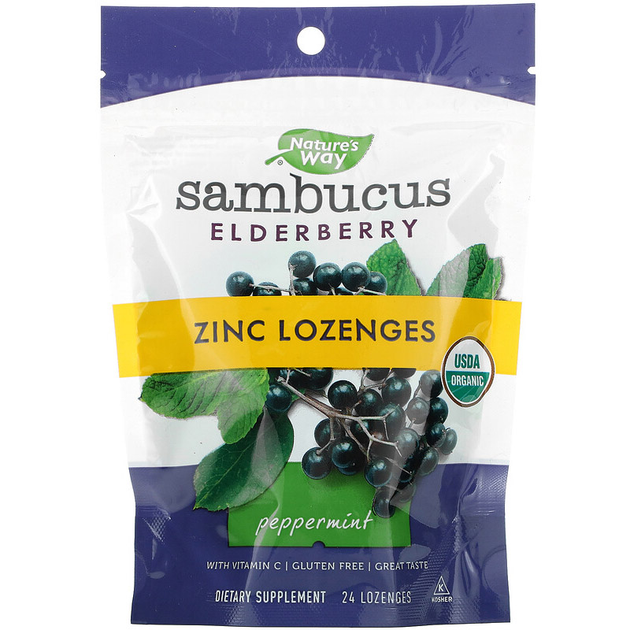 Бузина з цинком Nature's Way "Sambucus Zinc Lozenges Peppermint" з вітаміном С, м'ятний смак (24 льодяники)
