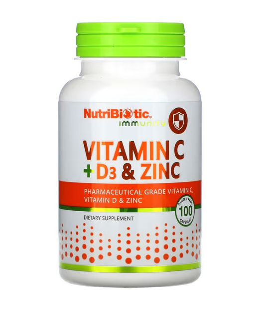 Імунна добавка з вітамінами C і D3 та цинком NutriBiotic Immunity 100 капсул