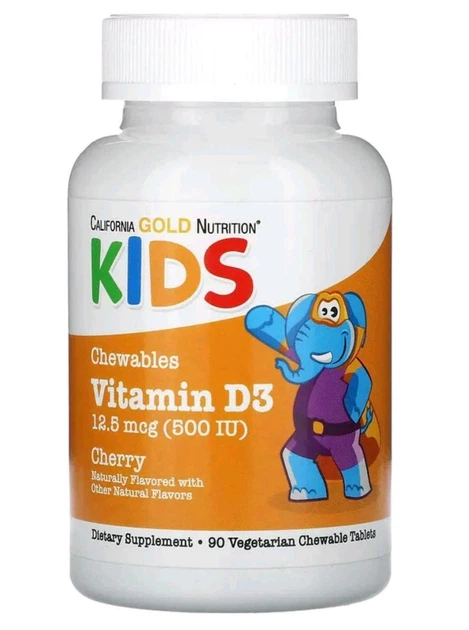 Жувальний вітамін D3 для дітей, зі смаком натуральної вишні, 12,5 мкг (500 МО), California Gold Nutrition, 90 вегетаріанськи