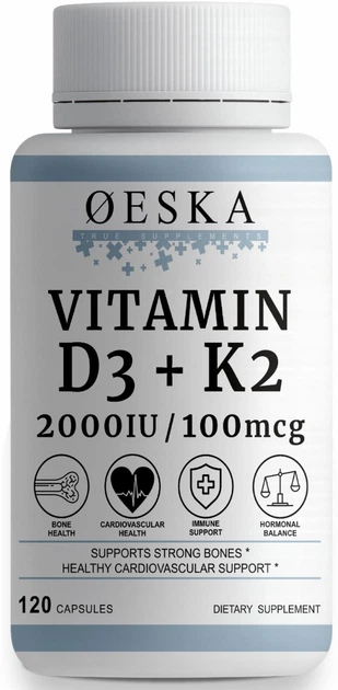 Вітамін Д3+К2 Oeska 120 капсул | D3 2000IU + K2 100mcg | MK-7