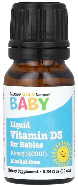 Рідкий вітамін D3 для малюків California GOLD Nutrition, Baby D3, в краплях, 10 мкг (400 МО), 10 мл