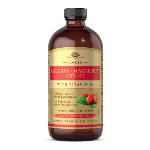Вітаміни та мінерали Calcium Magnesium Citrate with Vitamin D3 Liquid, 473 мл Полуниця Solgar 000289268