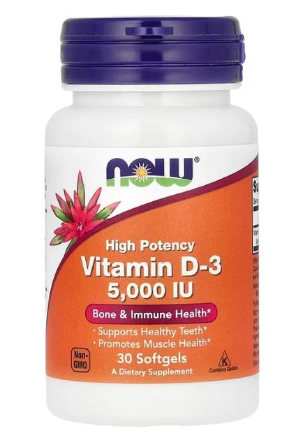 Вітамін D3 висока ефективність 5000 МО NOW Foods, 30 капсул