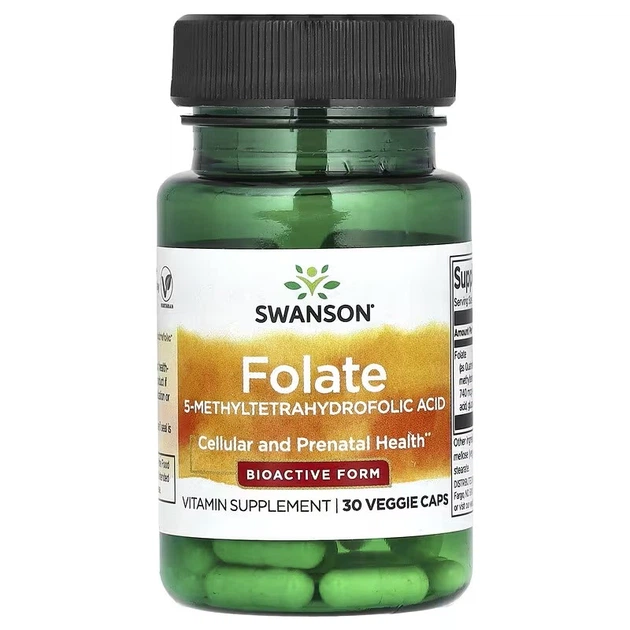 Фолат Swanson Folate [6S]-5-Methyltetrahydrofolic Acid 740 mcg (Quatrefolic® 680 mcg DFE), 30 капсул
