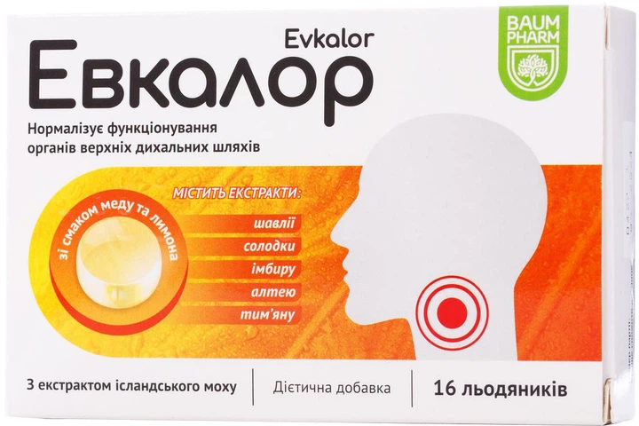 Евкалор натуральна добавка Baum Pharm лід. мед-лимон №16 (4820174572501)