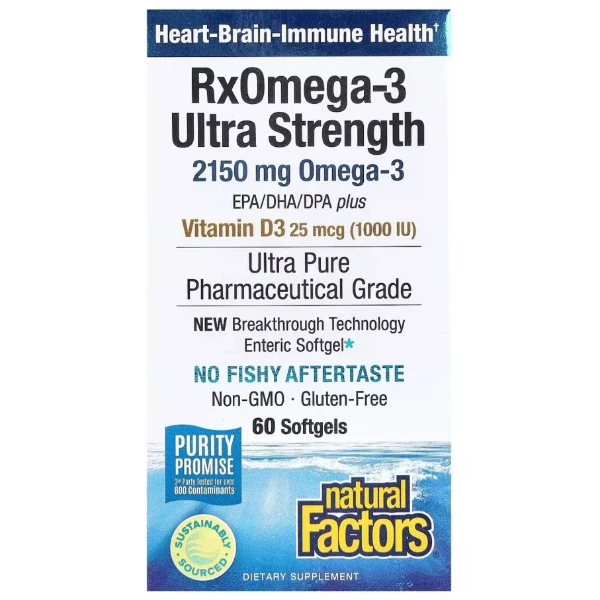 Омега 3 Natural Factors RxOmega-3 Ultra Strength 2150 mg with Vitamin D3 25 mcg 1000 IU 60 Softgels (000022108)