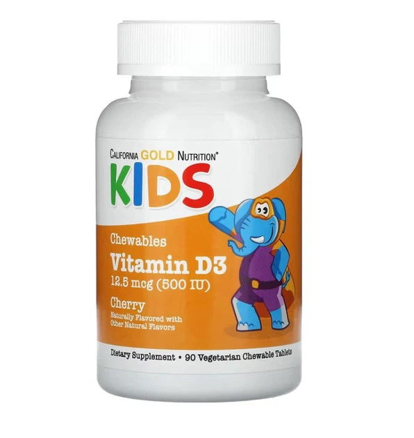 Жувальний вітамін D3 для дітей зі смаком вишні 12.5 мкг (500 МО) California Gold Nutrition 90 вегетаріанських таблеток