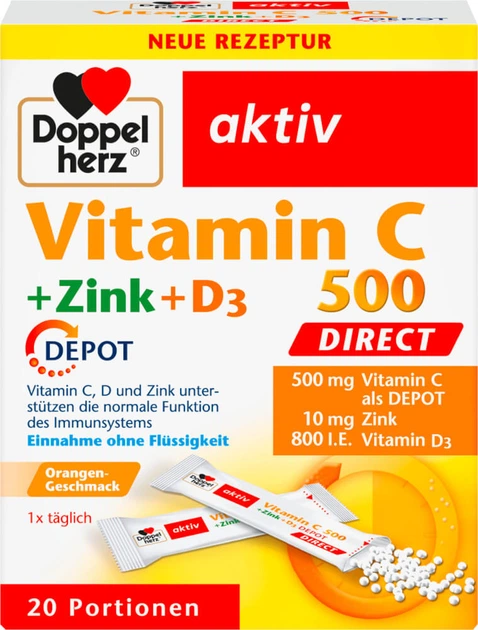 Добавка вітамін C 500 + Цинк + D3 Doppelherz 20 таблеток