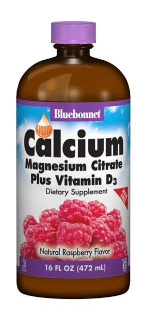 Вітамінно-мінеральний комплекс Bluebonnet Nutrition Рідкий Кальцій Цитрат Магнію + Вітамін D3 Смак Малини 16 рідких унцій (4
